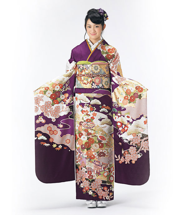 This kimono called furisode is made for a single, unmarried Japanese woman. The name furisode means for “swinging sleeves.” This is because the sleeves are about 110 cm in length (Lad).