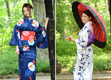 A yukata is a kimono-like robe. A yukata is worn in the summertime, as it is made of cotton and unlined, which makes it much more breathable. An obi is worn to secure the yukata in place. These were originally designed for the noble to wear to and from their baths since bath towels were not yet used in Japan. They since have become a casual version of the kimono and are used in summer events. With the yukata, the choice of shoe would be a geta, a much more casual version of the zori. The geta is an all season sandal made of wood (From Japan).